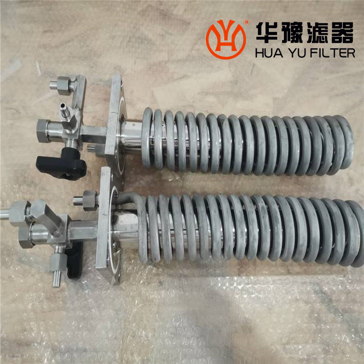 外盤管兩個流程,整個過程中樣水和冷卻水進行充分的逆向熱交換。GN01B型雙盤管冷卻器采用φ10×1.5不銹鋼盤管,有效冷卻面積大,