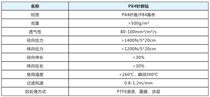 P84針剌氈采用奧地利LENZING公司所生產(chǎn)的P84纖維(即聚酰亞胺)經(jīng)三維針刺而成,具有很好的耐高溫性能,耐溫達280℃,且P84纖維截面呈不規(guī)則葉狀,可以大大提高過濾效果,纖維本身還有一定的抗水解、抗氧化性,該產(chǎn)品耐溫性好、過濾效果好、廣泛地適用于混凝土攪拌、水泥、垃圾焚燒、燃煤鍋爐等復雜工況條件下使用。
