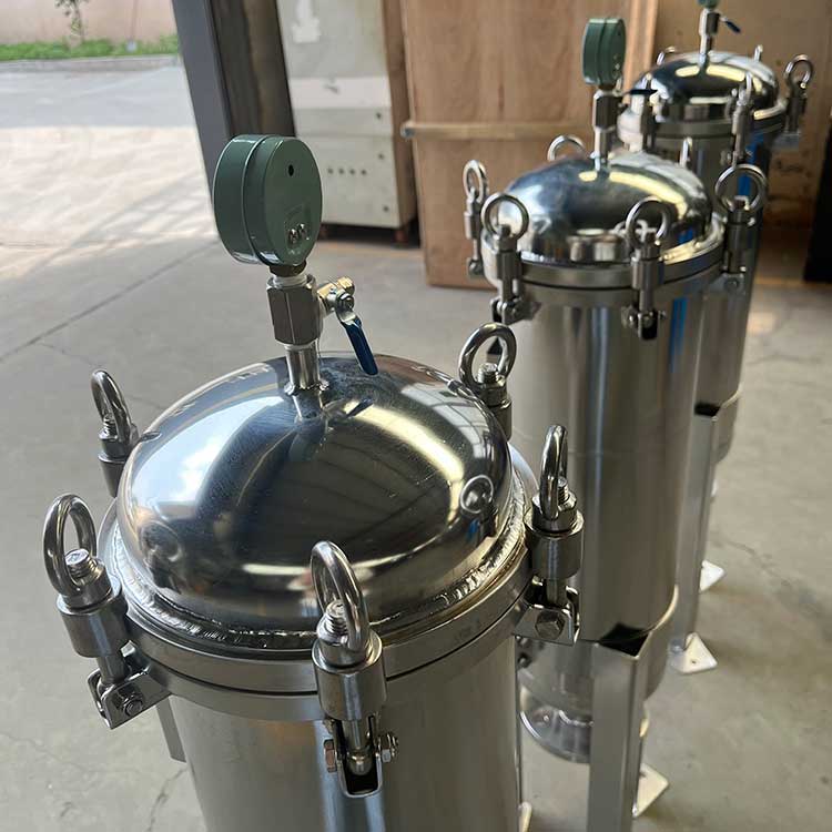 袋式過濾器一種結構新穎、體積小、操作簡便靈活、節能、高效、密閉工作、適用性強的多用途過濾設備。袋式過濾器是一種新型的過濾系統。袋式過濾器內部由金屬網籃支撐濾袋,液體由入口流進,經濾袋過濾后從出口流出,雜質攔截在濾袋中,更換濾袋后可繼續使用。